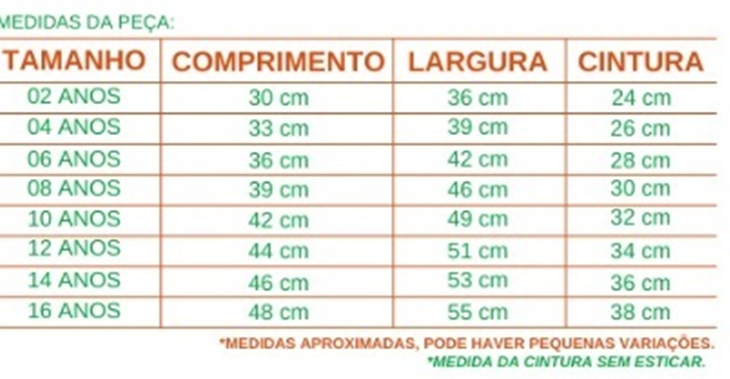 Atenção: Sempre que tiver dúvidas, sugerimos que escolha um tamanho maior! :)